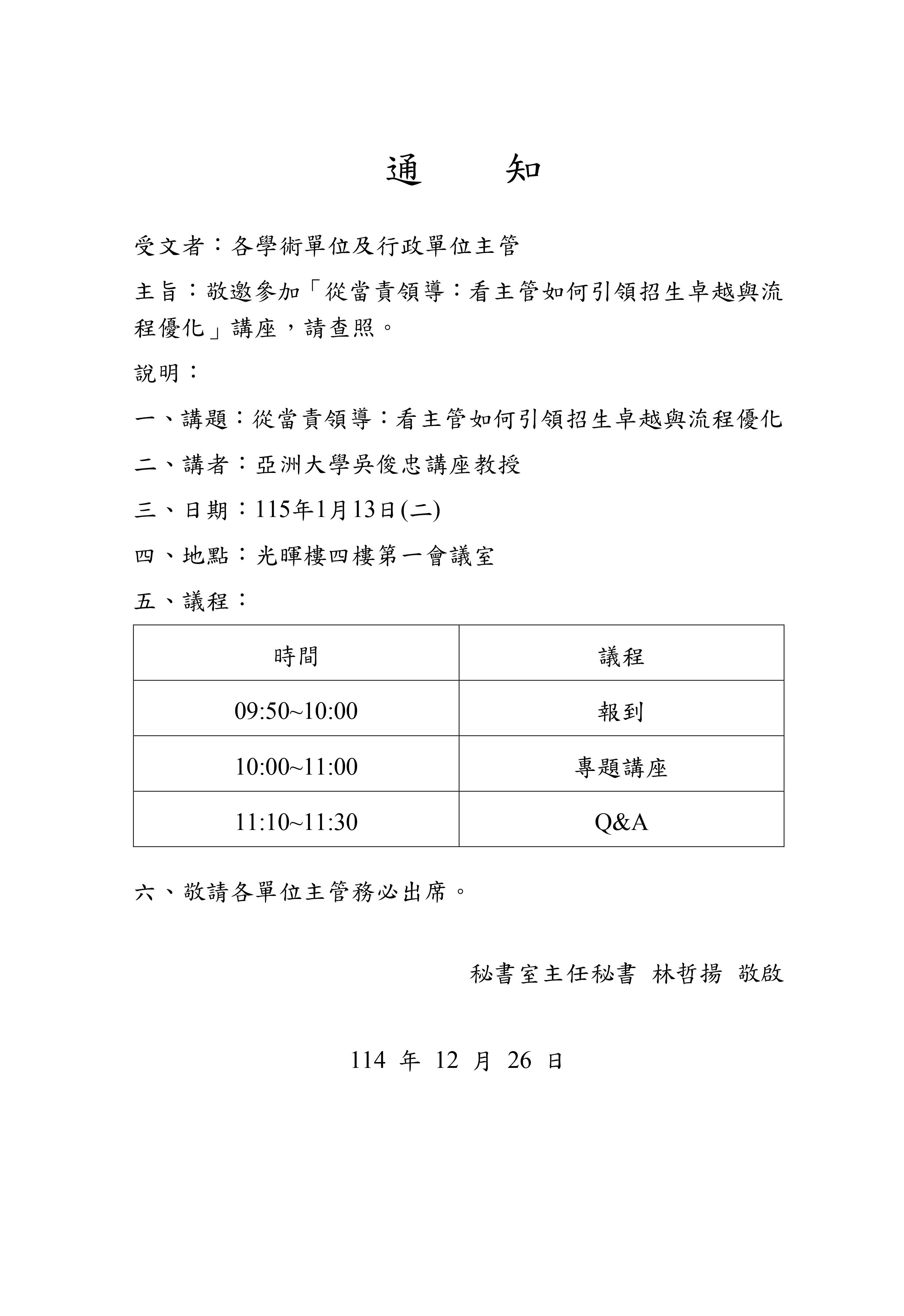 【通知】「從當責領導:看主管如何引領招生卓越與流程優化」講座